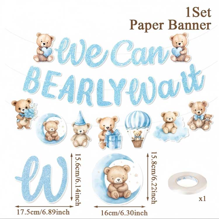 Banner sinh nhật: 1 banner/bộ, kèm 2-3 dây treo để treo trang trí; được in dòng chữ "Chúc mừng sinh nhật" hoặc "Chào mừng". Văn bản theo chủ đề em bé