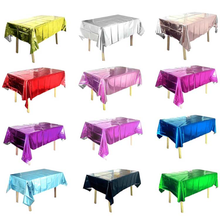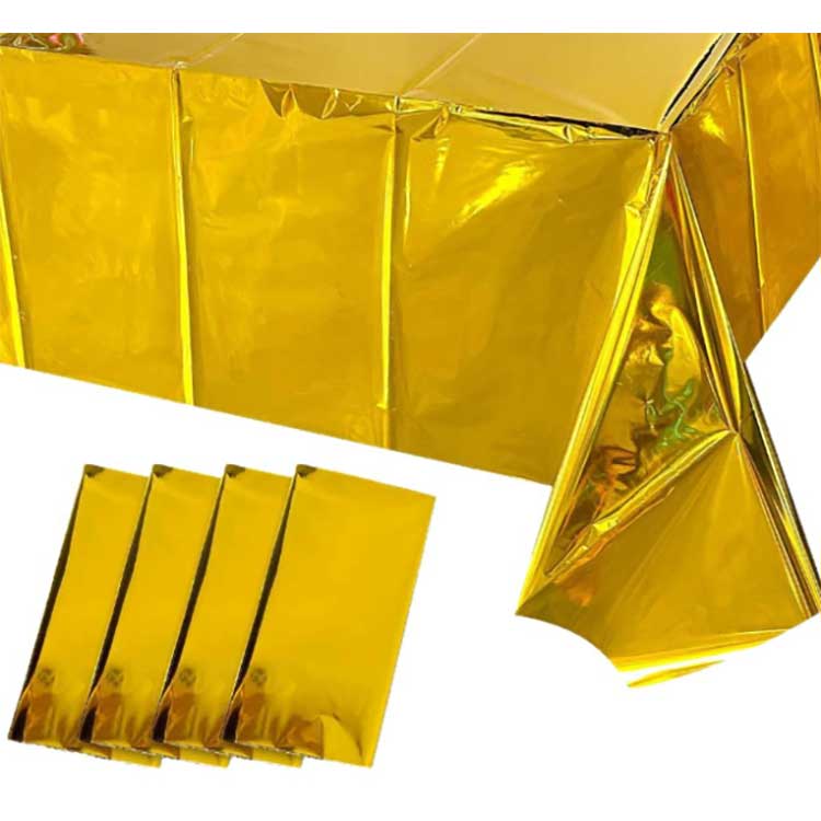 Tấm che bàn bằng giấy bạc được sử dụng để bày bàn trong các lễ kỷ niệm khác nhau. Nó có thể giúp mặt bàn không bị ố, trầy xước hoặc hư hỏng, màu sắc và hoa văn cũng có thể mang lại hiệu quả trang trí. Nó được làm bằng màng phủ nhôm PET đặc biệt. Trong quá trình sản xuất, chúng tôi đã sử dụng công nghệ phủ chân không để đảm bảo độ bền, độ dẻo dai và khả năng chống lão hóa của tấm trải bàn. Hơn nữa, các phân tử mật độ cao của nó có thể ngăn chặn hiệu quả sự xâm nhập của vết súp hoặc vết dầu, đồng thời nó còn có chức năng chống thấm nước.