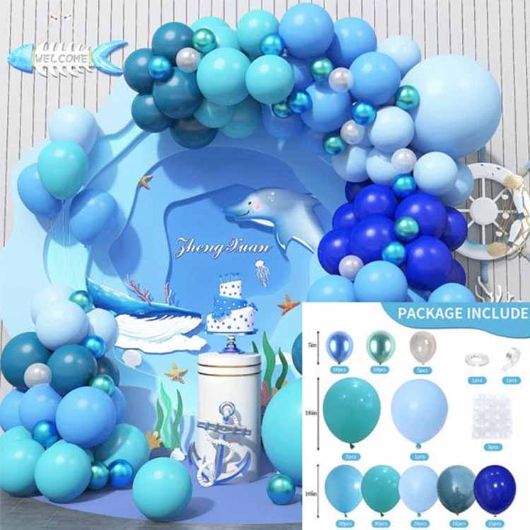 Bộ bóng bay đại dương là một vật trang trí cảnh quan được phát triển dựa trên khái niệm “sinh thái biển”. Thông qua việc sử dụng phối hợp màu sắc, hình dạng và phụ kiện, nó thể hiện sự huyền bí và sức sống của đại dương. Thích hợp cho các bữa tiệc sinh nhật, phòng trẻ em, các sự kiện theo chủ đề đại dương, trưng bày trên cửa sổ trung tâm mua sắm và các dịp khác, nó vừa mang tính trang trí vừa mang tính tương tác, khiến nó đặc biệt phổ biến với các gia đình, người tổ chức tiệc và người tổ chức sự kiện theo chủ đề.