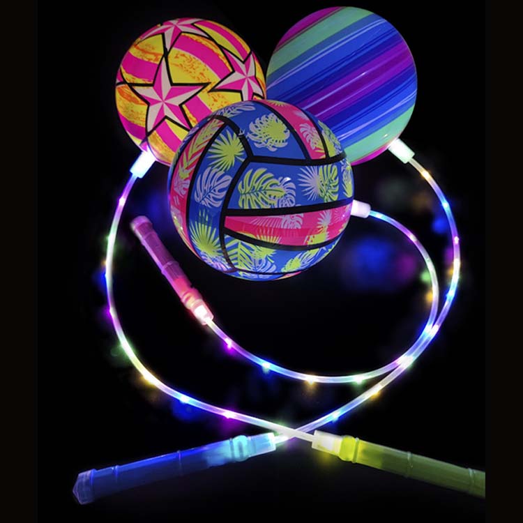 Chuỗi bóng bouncy với đèn LED được bouncy bóng gắn vào chuỗi, với đèn LED được nhúng bên trong hoặc trên bề mặt. Khi bật lên, đèn LED phát ra ánh sáng đầy màu sắc khi bạn bật, xoay hoặc giữ nó. Những ánh sáng này có thể nhìn thấy rõ hơn trong môi trường tối.