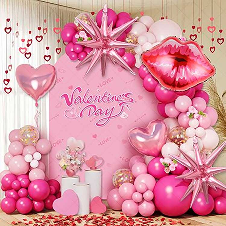 Bộ vòng hoa bóng bay ngày lễ tình nhân bao gồm bóng bay cao su thân thiện với môi trường và bóng bay lá rực rỡ được thiết kế để sử dụng lâu dài. Chứa 50-80 quả bóng bay cao su với nhiều kích cỡ khác nhau, cùng với 5-8 trang trí hình trái tim/chữ cái bằng giấy bạc. Bộ sản phẩm DIY bao gồm dây chuyền bóng bay, chấm dính, ruy băng và hướng dẫn. Đơn giản để lắp ráp cho cả sử dụng trong nhà và ngoài trời.