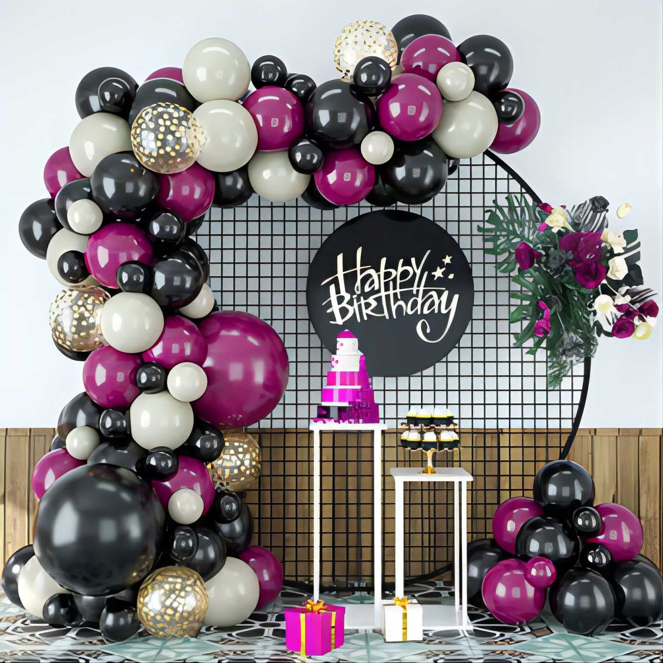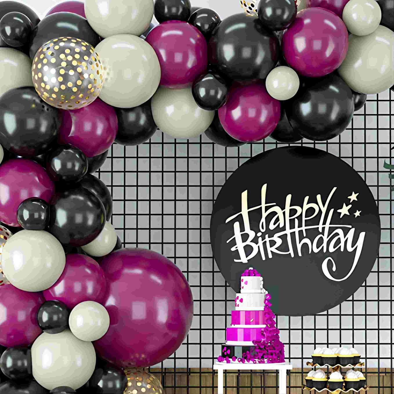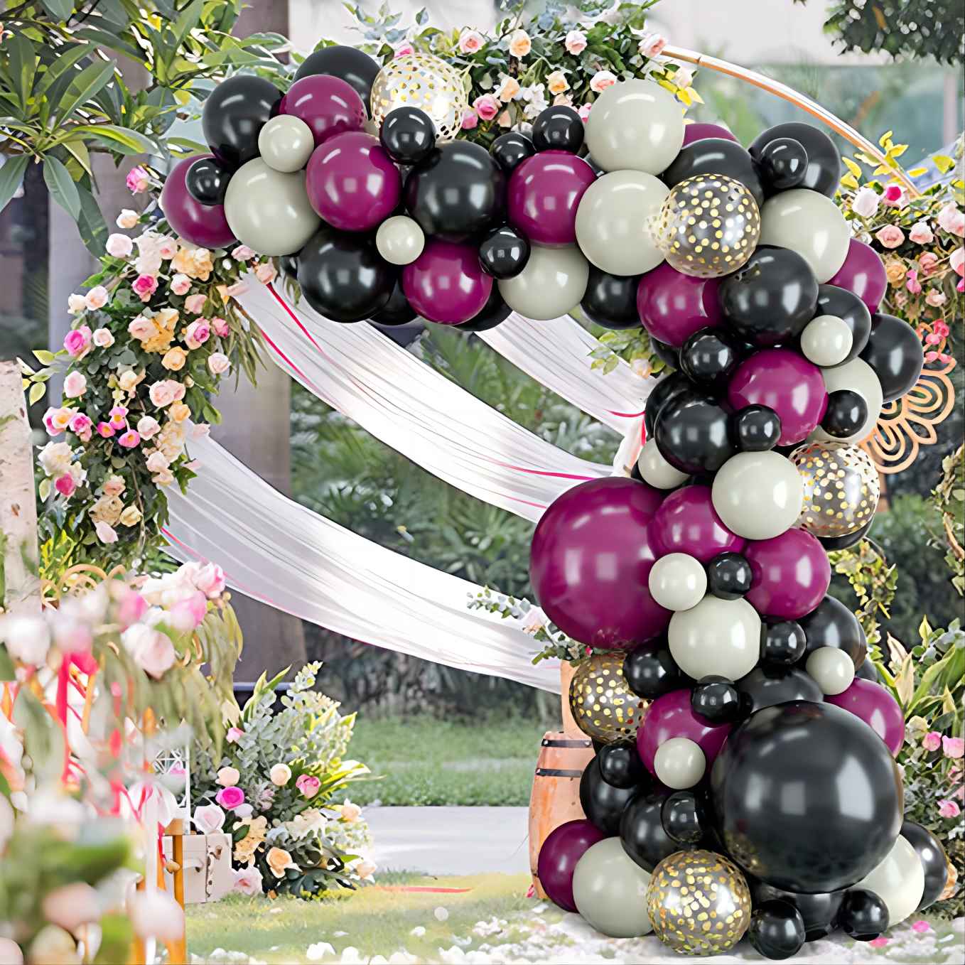 Vòng hoa bong bóng cát trắng rượu vang đỏ đen có nhiều màu sắc, hình dạng khác nhau của sản phẩm, thường được sử dụng để trang trí và tổ chức lễ kỷ niệm, chẳng hạn như tiệc sinh nhật, đám cưới và các dịp khác.
